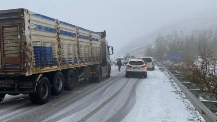 Mardin'in Mazıdağı ilçesinde etkili olan dolu yağışı sebebiyle onlarca araç yolda mahsur kaldı.