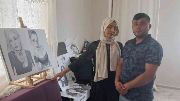 Mardin’in Kızıltepe ilçesinde yaşayan 32 yaşındaki 2 çocuk annesi ev hanımı Rahime Can, yaptığı karakalem portreleri yurt içi ve yurt dışına gönderiyor.