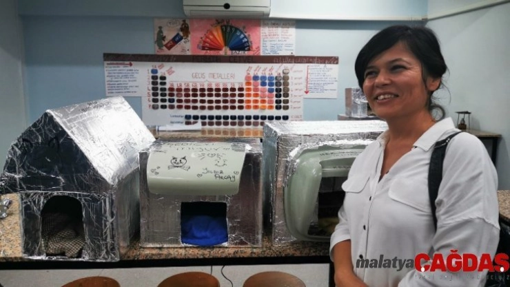 Muğla'nın Marmaris ilçesindeki okulda görev yapan kimya öğretmeni Yıldız Akçay ve öğrencileri katı atık malzemelerinden sokak hayvanları için 21 adet yuva yaptı.