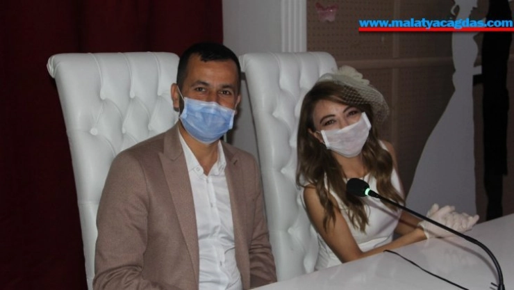 Maske ve eldivenle dünyaevine giren çifti telekonferansla tebrik ettiler