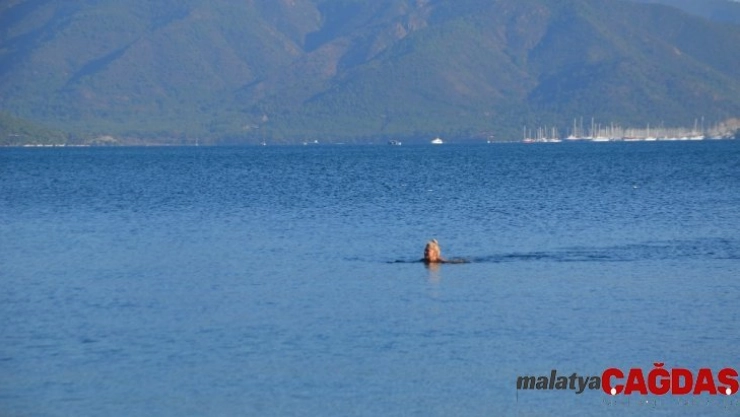 Memlekette kış Marmaris'te deniz keyfi