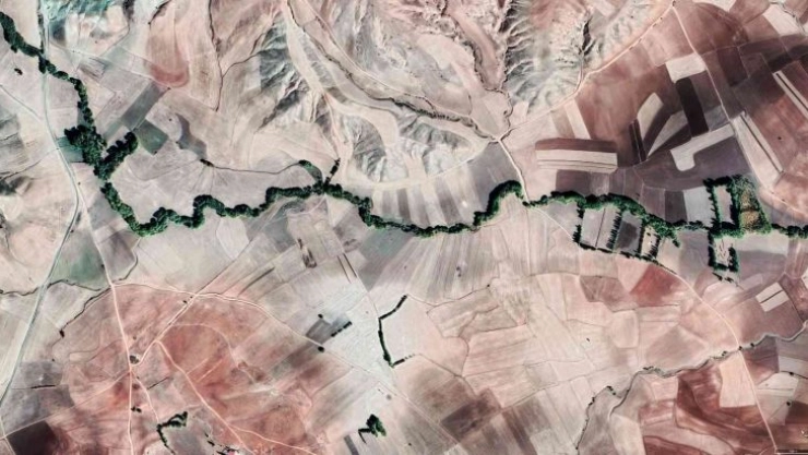 Sivas’ta dere kenarına dikilen binlerce ağaç bozkırın ortasında adeta menderes görünümlü bir orman oluşturdu.