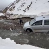 Menfez olmayan yolda sel: Araçlar mahsur kaldı
