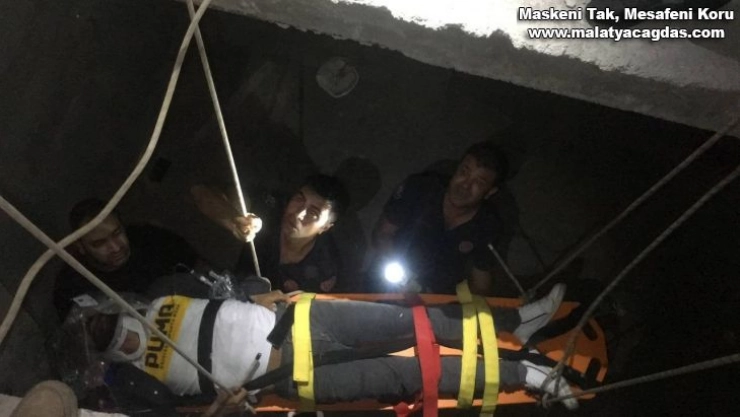 Elazığ'da inşaat halindeki binaya giren ve merdiven boşluğuna düşerek yaralanan şahıs, sağlık ve itfaiye ekiplerinin uzun uğraşları sonucu sedyeyle halat yardımıyla kurtarıldı.