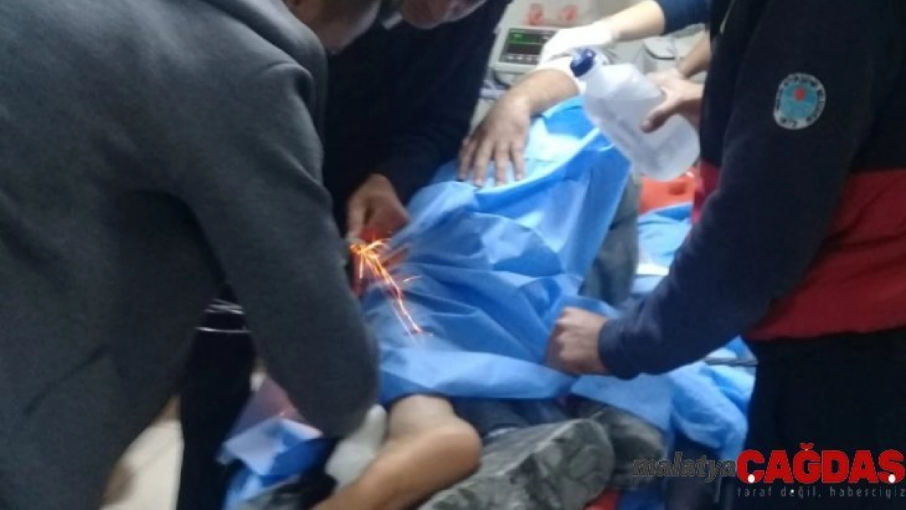 Mersin'in Tarsus ilçesinde bir beton fabrikasında çalışan işçinin bacağına saplanan çelik halat, hastanede itfaiye ekiplerince kesici alet yardımı ile çıkarılabildi.