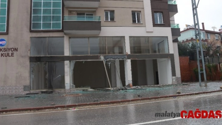 Patlamanın etkisiyle kazan dairesinin önündeki boş iş yerlerinin cam ve çerçeveleri parçalandı.