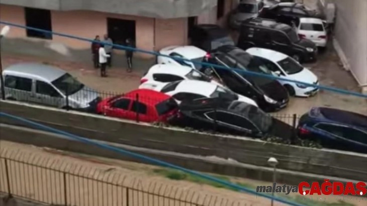 Merkez Mezitli ilçesinde Onur Sitesi önündeki araçlar sel sularında sürüklendi, Akdeniz ilçesindeki Deliçay taştı.