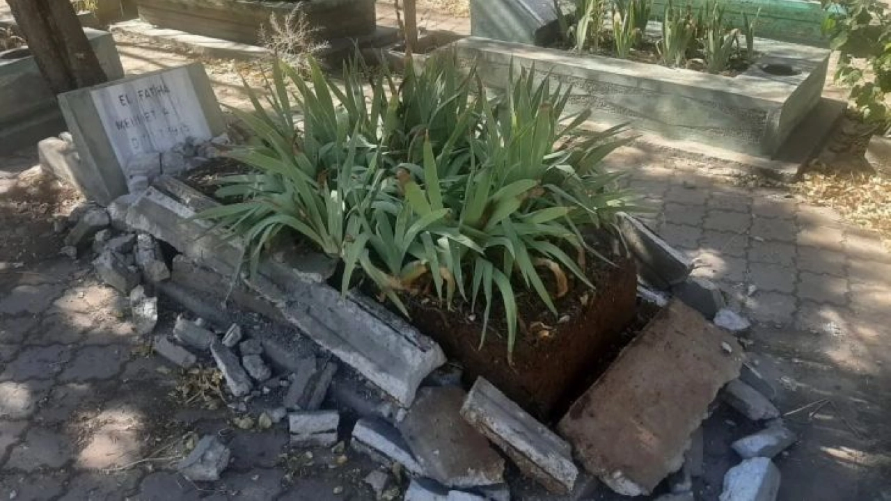 Diyarbakır'da mezarlığa giren şahıslar, alkol ve uyuşturucu madde kullandıktan sonra kabirleri yıkarak betonların içerisinde yer alan demirleri çalıp kaçtı.