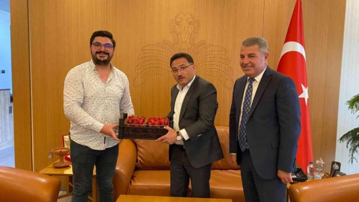 Topraksız tarım ile üretilen çilekler Vali Çiçek’e ikram edildi