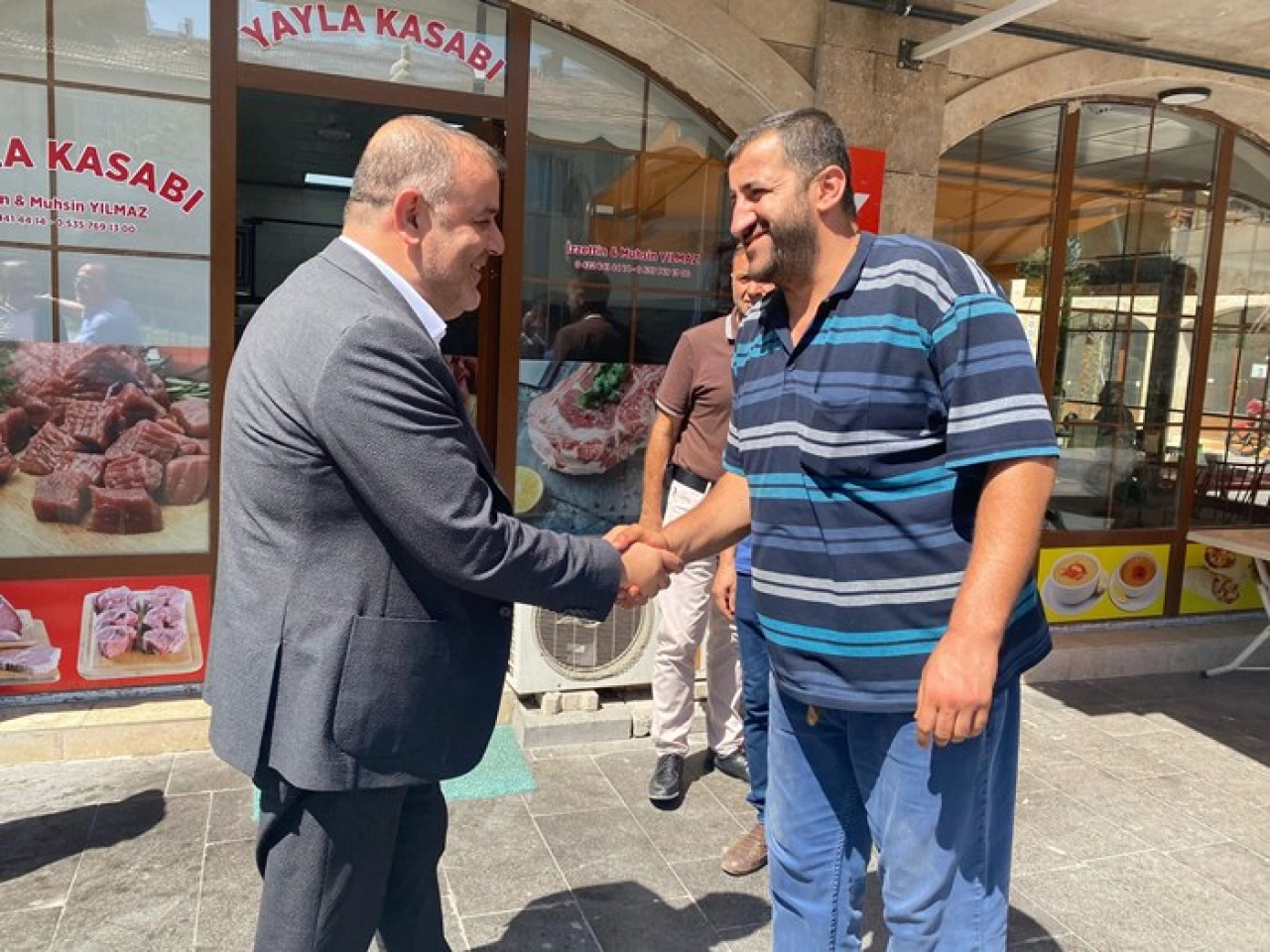 Heyet, ilçedeki esnafları ve vatandaşları tek tek ziyaret ederek hem gündeme ilişkin fikir alışverişinde bulundu hem de yerel sorunları dinledi.