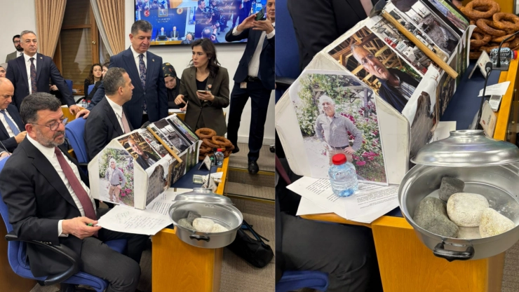 CHP, Protesto İçin Taş Dolu Boş Tencere, Tabut Ve Çekiç Getirdi.