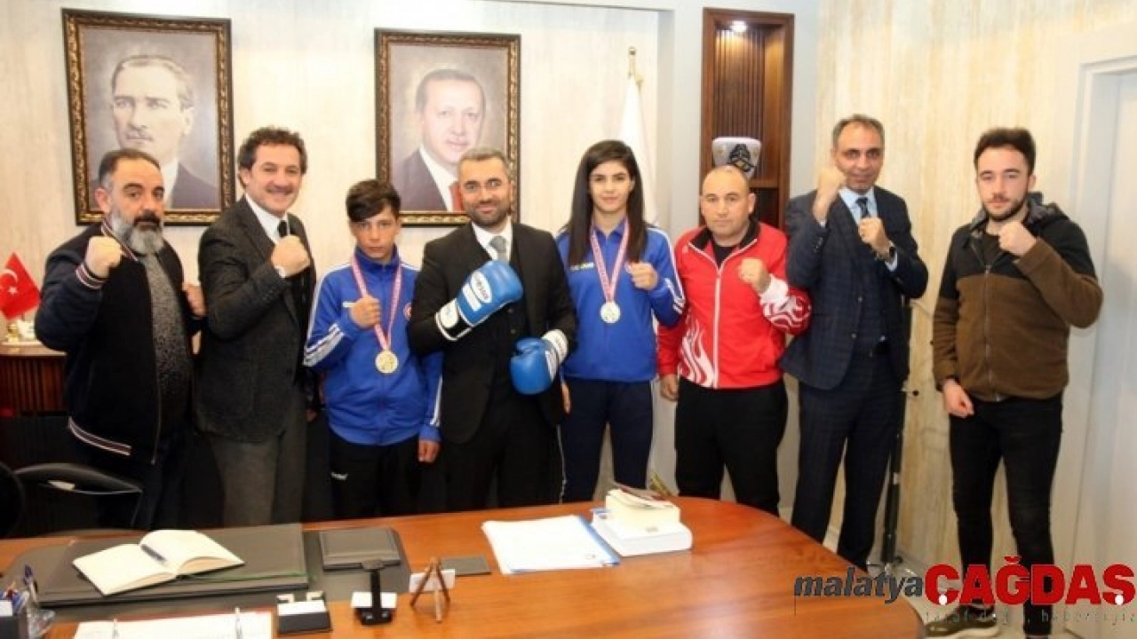Türkiye'yi temsilen Avrupa şampiyonlarına katılarak derece elde eden milli boksörlerden Evin Erginoğuz ve Ahmet Pekel, Van'ın Edremit Belediye Başkanı İsmail Say'a teşekkür ziyaretinde bulundular.