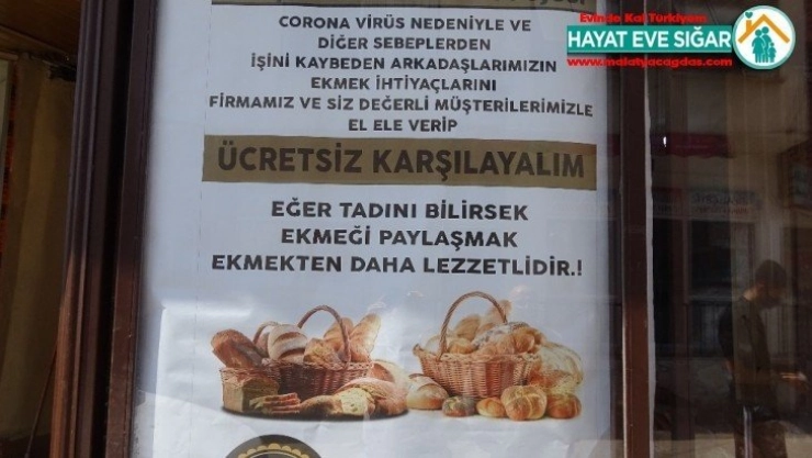 "Korona virüs nedeniyle ve diğer sebeplerden işini kaybeden arkadaşlarımızın ekmek ihtiyacını firmamız ve siz değerli müşterilerimizle el ele verip ücretsiz karşılayalım. Eğer tadını bilirsek, ekmeği paylaşmak, ekmekten daha lezzetlidir."