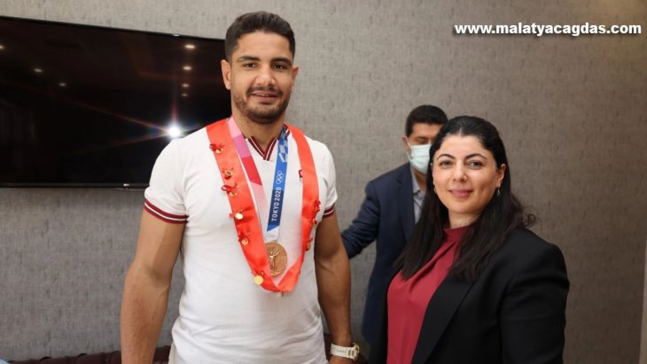 Tokyo Olimpiyat Oyunları’nde erkekler serbest stil 125 kiloda bronz madalya kazanan Sivaslı milli güreşçi Taha Akgül, Sivas Vali Vekili Yeliz Yıldızhan’ı makamında ziyaret etti. Milli Güreşçi Akgül, örnek davranış sergileyerek Sivas Valiliği tarafından kendisine hediye edilen altınları, Kastamonu’da meydana gelen sel felaketinden etkilenen vatandaşlara bağışladı.