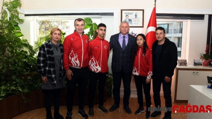 Milli karateciler Müşerref Özdemir ve Gelodi Surmanidze, Kemer Belediye Başkan Yardımcısı ve Başkan Vekili Emin Gül’ü ziyaret etti. Ziyarette, milli sporculara, milli takım antrenörü Emin Akar, Müşerref Özdemir’in babası Tahsin Özdemir ve Gelodi Surmanidze’nin annesi Ceylan Surmanidze de eşlik etti. Makedonya’nın Üsküp şehrinde düzenlenen Ümit Genç U21 Balkan Şampiyonası’nda Türkiye’yi temsil eden Milli sporcular Özdemir ve Surmanidze, Kemer’e madalya ile döndü. Müşerref Özdemir, Ümit Kadınlar 47 kiloda ferdi ve takım kategorilerinde balkan şampiyonu olurken, Gelodi Surmanidze ise Ümit Erkekler 63 kiloda takım kategorisinde balkan şampiyonu, ferdi kategorisinde de balkan ikincisi oldu.