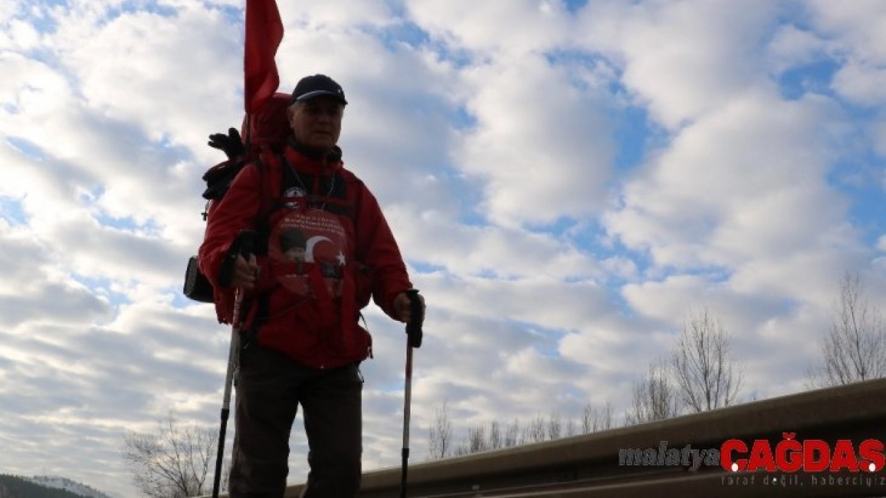 67 yaşındaki emekli dağcı Osman Kemal Ağaoğlu, 'Mustafa Kemal Atatürk'ün İzlerinde Samsun'dan Ankara'ya' olarak adlandırdığı yürüyüşünün son etabını Sivas'tan başlattı.