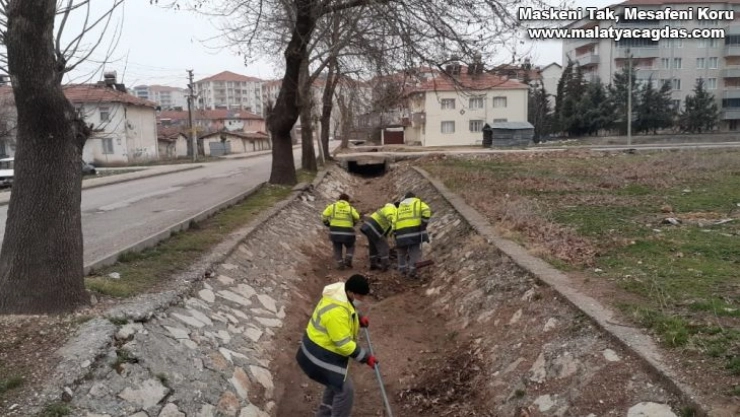 Adıyaman'ın Gölbaşı ilçesi Mimar Sinan Mahallesi üzerinde bulunan su kanalında biriken çöplerin temizlenmesi için çalışma başlattı.