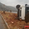 Adıyaman’ın Gölbaşı ilçesi Malatya karayolu üzerinde yağmur nedeniyle yolda kayan minibüs yan yattı.