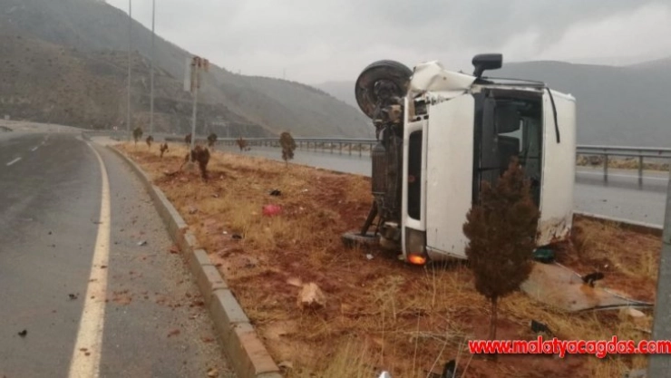 Edinilen bilgiye göre, Adıyaman istikametinden Malatya istikametine giden Emrah Dağaşan idaresindeki 80 BE 356 plakalı minibüs Karanlıkdere köyü mevkiinde sürücüsünün direksiyon hakimiyetini kaybetmesi sonucu kontrolden çıkarak refüje yan yattı.