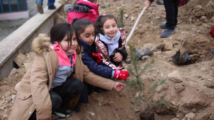 Minik yürekler okul bahçelerine fidan diktiler