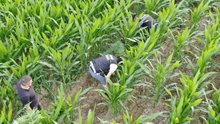 Mısır tarlasında 477 kök Hint keneviri ele geçirildi