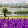 Sivas'ta baraj kenarında açan mor çiçekler görsel şölen oluşturdu.