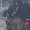 Adıyaman'ın Gölbaşı ilçesinde bir motosiklet üzerindeki iki kişi, aralarına aldıkları 2 keçinin ayaklarını yerde sürükleyerek taşıdı.