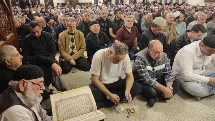 Müftü Dolu'nun konuşmasının ardından, kılınan yatsı ve teravih namazının ardından program, tesbih namazının kılınmasıyla devam etti.