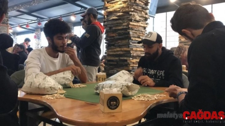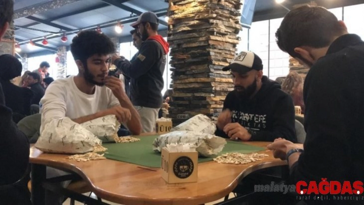 Afyonkarahisar’da bir kafede yapılan çekirdek çitleme yarışmasında yarım saatte en çok çekirdek tüketen yarışmacıların mücadelesinde ilginç görüntüler ortaya çıktı.