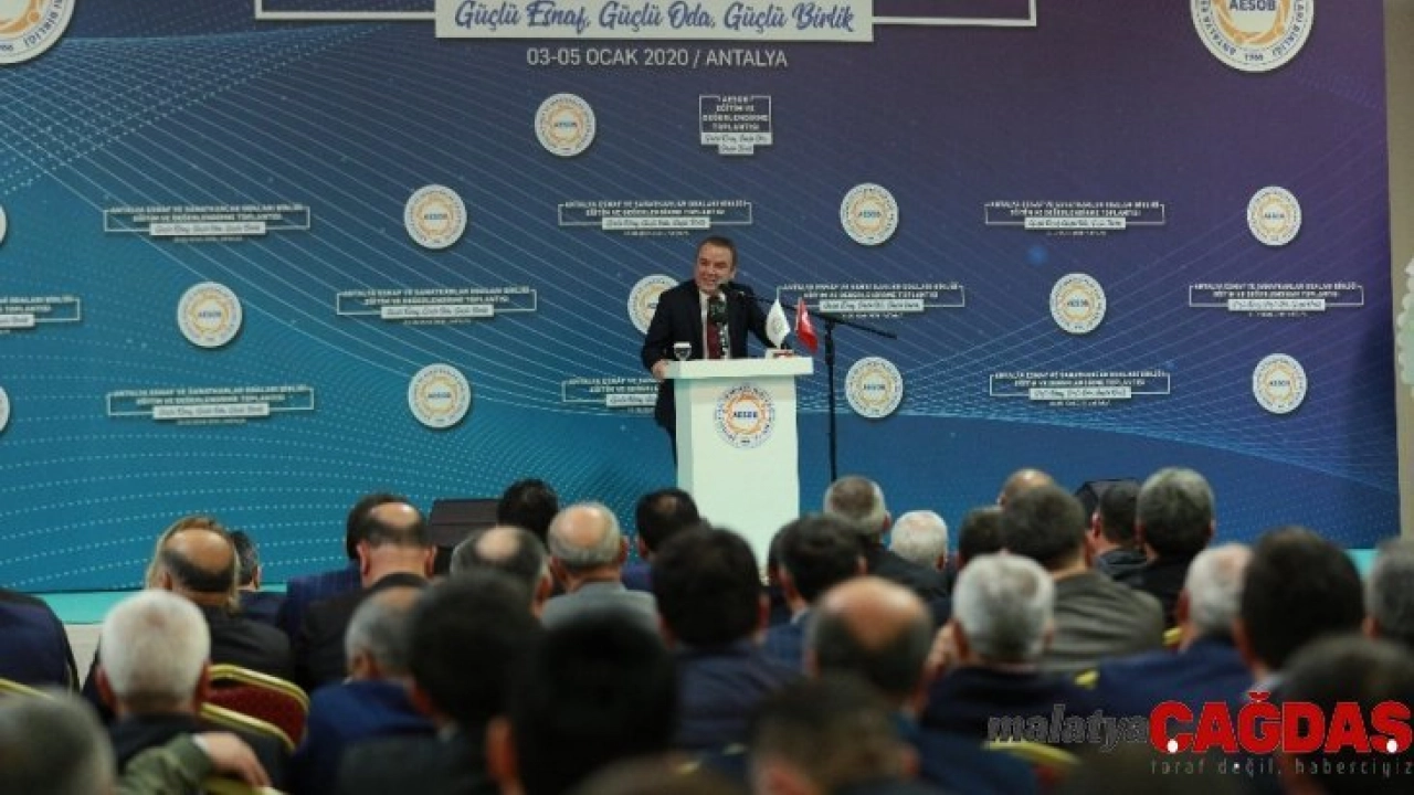 Antalya Büyükşehir Belediye Başkanı Muhittin Böcek, Antalya Esnaf ve Sanatkarlar Odaları Birliği (AESOB) tarafından düzenlenen eğitim ve değerlendirme toplantısına katıldı. Antalya’yı ortak akılla yönetmeye devam edeceklerini söyleyen Böcek, “Önümüzdeki süreçte esnafımızla ilgili, esnaf odası başkanı arkadaşlarımızın talepleri doğrultusunda yapılması gereken ne varsa yapacağız” dedi.