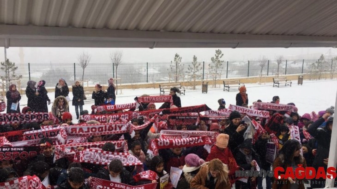 - Muhtar öğrencilere karna hediyesi olarak Sivasspor atkısı hediye etti