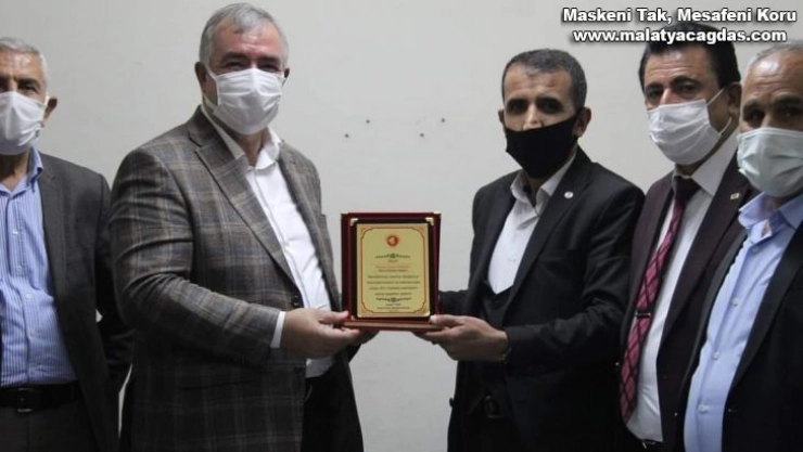Adıyaman'ın Kahta ilçesinde merkez mahalle muhtarları, Kahta Belediye Başkanı İbrahim Yusuf Turanlı'ya ilçe merkezinde yaptıkları hizmetlerden dolayı teşekkür ederek, kendisine plaket takdim etti.
