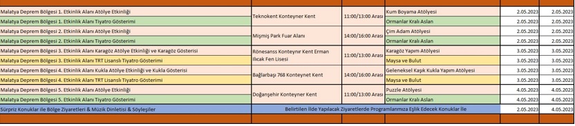 Aynı proje kapsamında 6 Şubat 2023 depremlerinden etkilenen Hatay, Kahramanmaraş’ta geçtiğimiz ay benze etkinlikler düzenlenmişti. Mayıs ayı içerisinde Malatya’nın yanı sıra Adıyaman’da etkinlikler düzenlenecek.