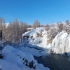 Van'ın Muradiye ilçesinde bulunan Muradiye Şelalesi, etkili olan dondurucu soğuklar nedeniyle buz tutarak travertenleri andıran görüntüler oluşturdu.