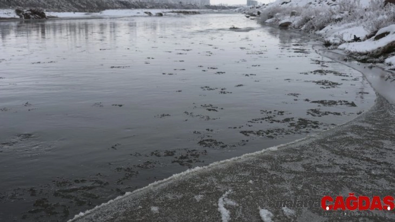 Ağrı'yı etkisi altına alan soğuk havalardan dolayı Murat Nehri kısmi olarak dondu.