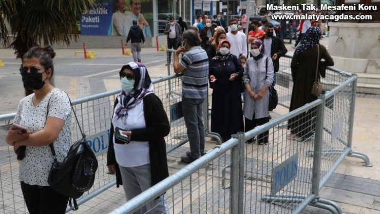 Malatya’da Covid-19 tedbirleri kapsamında uygulanan sokağa çıkma kısıtlamasını hiçe sayan vatandaşlar, bankacılık ve kargo işlemlerini halletmek için Battalgazi ilçesi, Dabakhane Mahallesinde bulunan PTT başmüdürlüğü binasına akın ettiler. Sabahın erken saatlerinden itibaren PTT başmüdürlüğüne gelen vatandaşlar, bina önünde kuyruk oluşturdular. PTT kuyruğunda zaman zaman sosyal mesafede unutuldu.