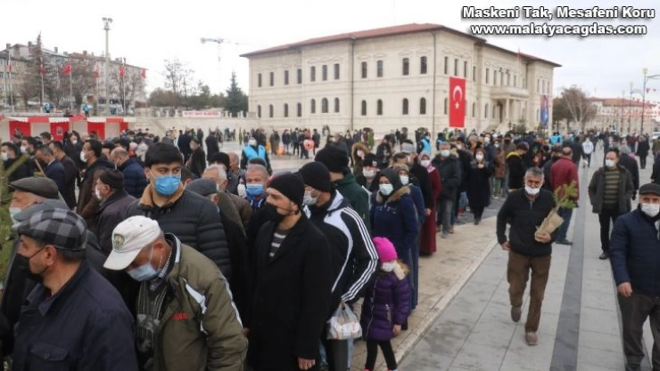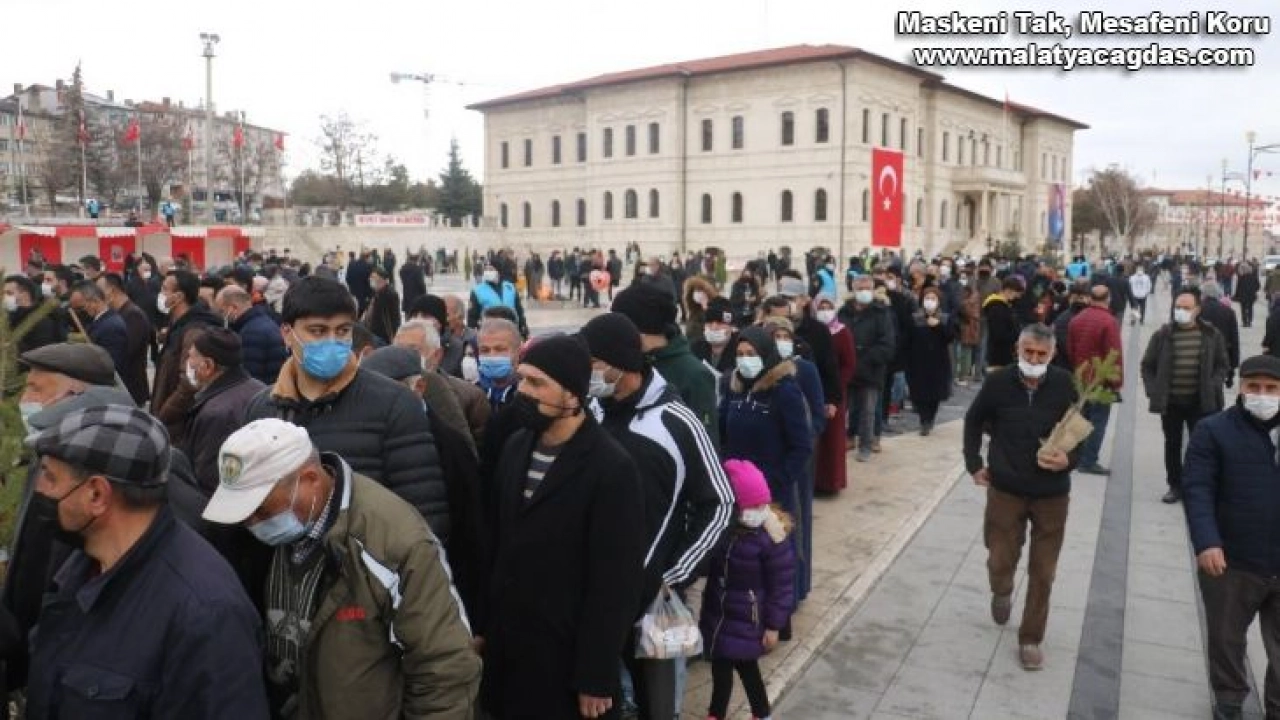 Sivas'ta Nevruz kutlamasında vatandaşların fidan alabilmek için metrelerce kuyruk oluşturması dikkat çekti.