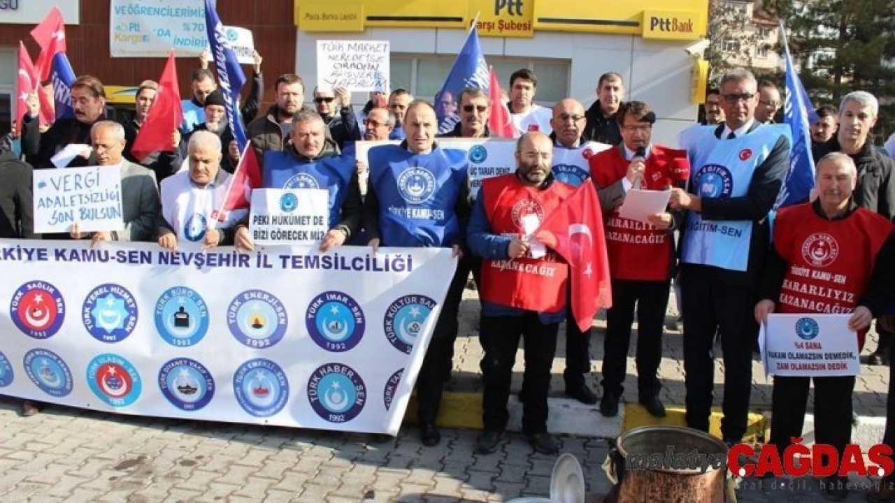 Türkiye Kamu-Sen Nevşehir İl Temsilciliği verilen maaş zamlarını protesto etmek için PTT Başmüdürlüğü önünde Ocak ayı bordrolarını yaktı.