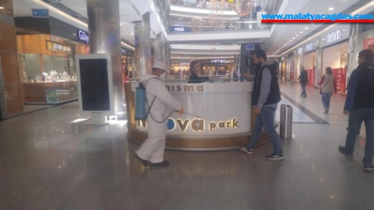 Diyarbakır'da binlerce vatandaşın ziyaret ettiği Ninova Park Alışveriş Merkezinde dezenfekte çalışması yapıldı.