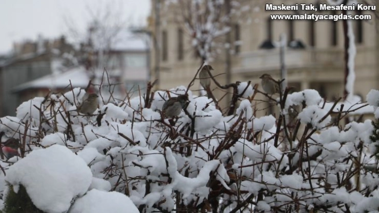 Sivas'ta gece etkili olan kar yağışı kent meydanında güzel görüntüler oluşturdu. Karla kaplı doğada yem bulamayan kuşların yardımına ise vatandaşlar yetişti.