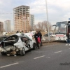 Sivas'ta yolcu otobüsüyle otomobilin çarpışması sonucu meydana gelen trafik kazasında polis memuru hayatını kaybederken nişanlısı ağır yaralandı.