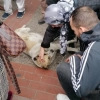 Bu sırada köpeğin yanına gelen küçük bir kız çocuğu yerde yatarken başını okşayıp gitti. Kızın ardından ayaklanan köpek cadde üzerinden kalkıp tarihi Tahtakale Çarşısı’na doğru yürüdü. Köpeğin numara yaptığını kendisini sevdirmek için her gün aynı şeyi yaptığını belirten bir işportacı ise, bekleyen kalabalığı şok etti. Şaşkına dönen vatandaşlar, köpeğin yürüdüğünü görünce alkışladılar. Köpeğin peşini bırakmayıp çarşı içerisine kadar takip eden 2 kadın, köpek yeniden yere yatınca bir süre daha köpekle ilgilendi. İşportacı, köpeği seven kadınlara, "Ona kasaptan 1 kilo kıyma alın sevinir" deyince herkes gülüştü. Köpeğin sağlıklı olduğuna kanaat getiren kadınlar, bir süre sonra köpeğin yanından ayrıldı. Sevimli köpek ise bir müddet daha yattıktan sonra gözden kayboldu.