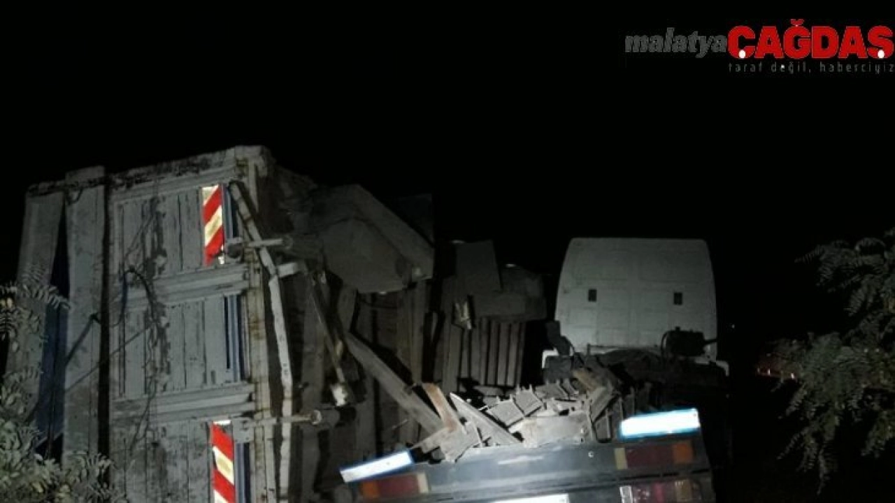 Adıyaman’ın Gölbaşı ilçesi Malatya karayolu üzerinde odun yüklü kamyon hızlı girdiği kavşaktan dönüş yaparken devrildi.