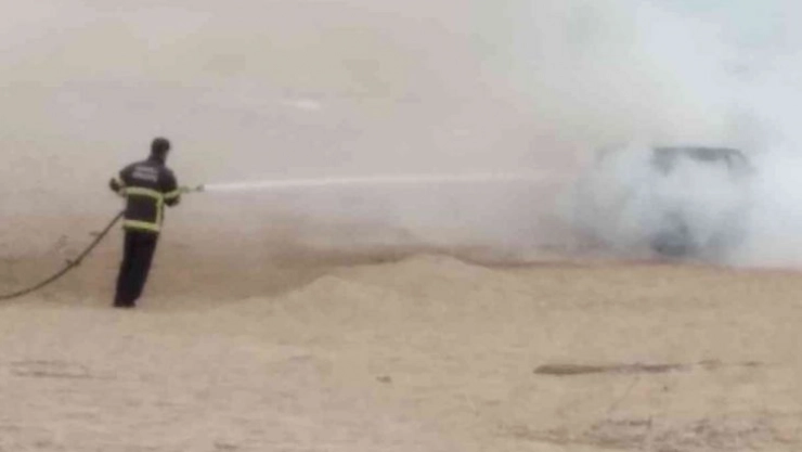Polis ekipleri olayla ilgili soruşturma başlatırken, otomobil plajdan kaldırılarak otoparka çekildi.