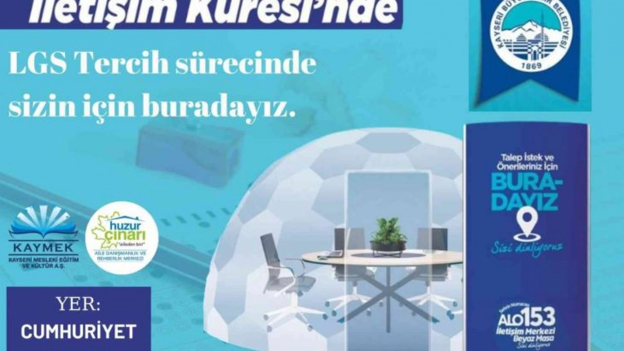 Öğrenciler için önemli ve heyecanlı bir dönem olan Liselere Geçiş Sistemi (LGS) tercih sürecinin başlamasıyla, Kayseri Büyükşehir Belediyesi tercih yapacak öğrencilere yönelik önemli bir hizmeti hayata geçirdi. Bu çerçevede Büyükşehir Belediyesi tarafından her yıl gerçekleştirilen ücretsiz tercih rehberliği ve danışmanlığı hizmeti bu yıl ‘Geleceğe Doğru Adım’ sloganı ile Cumhuriyet Meydanı’nda faaliyet gösteren İletişim Küresi’nde öğrencilerin hizmetine girdi.