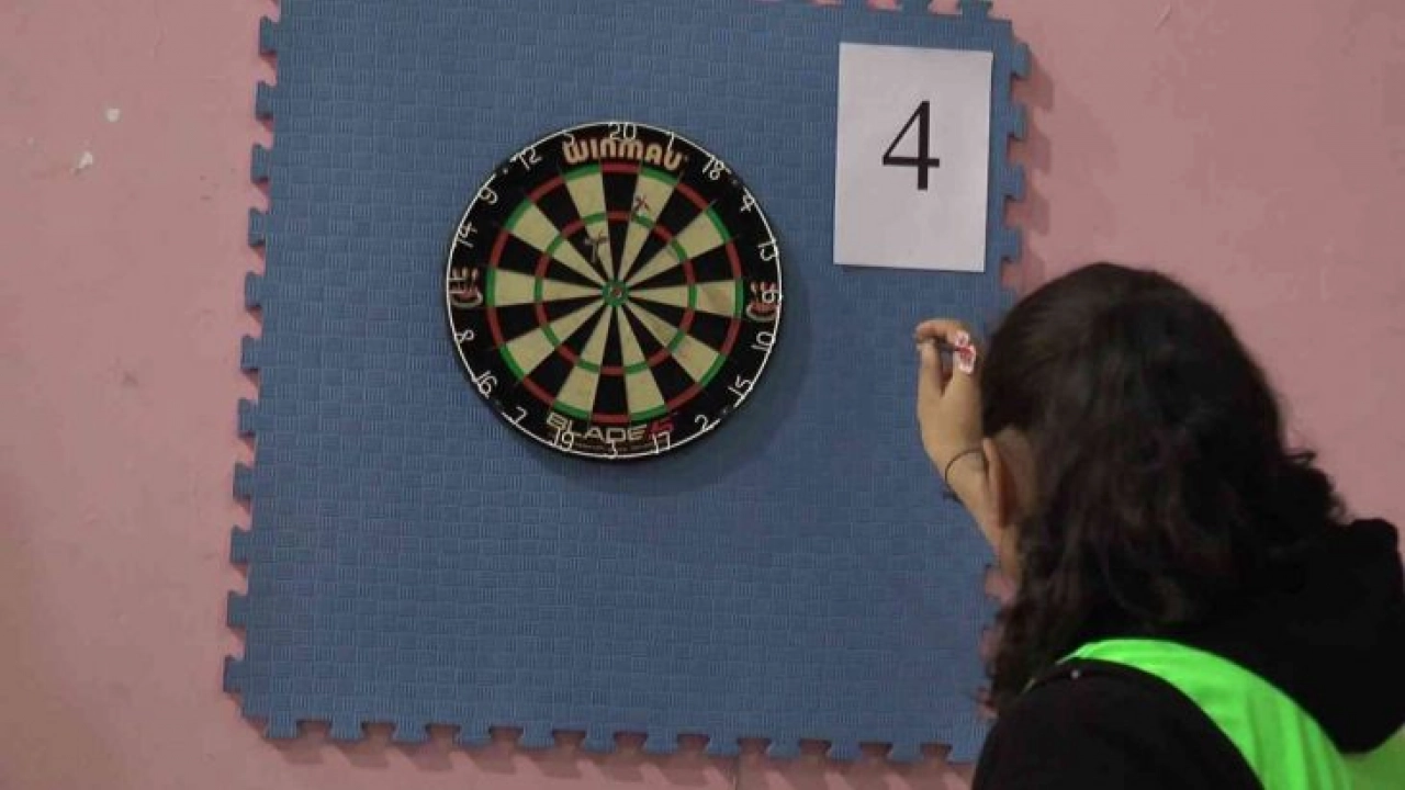 Mili Eğitim Müdürlüğü'nce organize edilen Okullar arası Dart turnuvasında öğrenciler hedefi on ikiden vurmak için performans sergiledi.