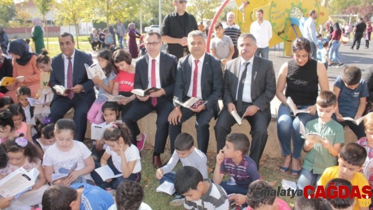 Etkinlikte protokol üyeleri, veliler, öğretmen ve öğrenciler parkta kitap okudu.