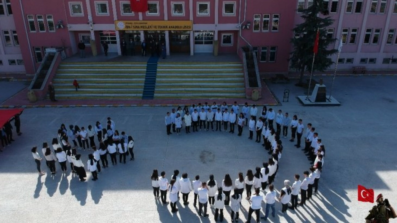 Ankara’nın Kızılcahamam ilçesinde bulunan İbn-i Sina Mesleki ve Teknik Anadolu Lisesi öğrencileri "Bahar Kalkanı Harekatı’na destek olmak için, okul bahçesinde oluşturulan ay yıldız ve Türk bayrağı havadan görüntülendi. Öğrenciler İdlib’de şehit olan askerler içinde dua etti.