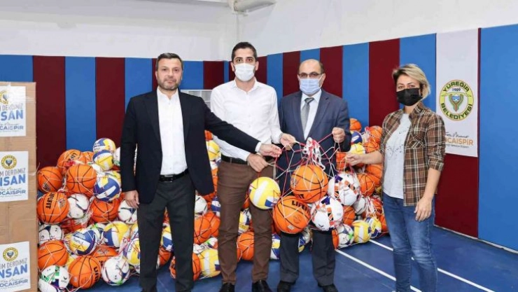 Yüreğir Belediyesi Gençlik ve Spor Hizmetleri Müdürlüğü, Ertuğrul Gazi Spor Kompleksi'nde düzenlenen törenle, ilçe geneli 93 ortaokul ve liseye futbol, basketbol, voleybol topu ve slalom setlerinden oluşan spor malzemesi desteği sağladı.