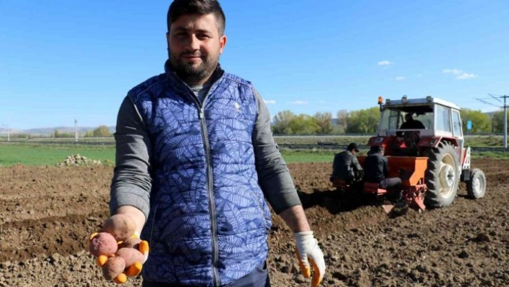 Sivas'ta patates ekim sezonunun açılmasıyla beraber tohumluk patatesleri teker teker elleriyle toprakla buluşturdular.